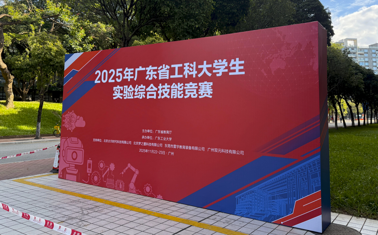 2025年11月22日至23日,由广东省教育厅主办、广东工业大学承办的2025年广东省工科大学生实验综合技能竞赛在广东工业大学大学城校区成功举办。本届竞赛以“理实并进,多学科交叉融合,提升实验综合技能”为主题,秉承原创性、先进性、实用性和安全性的原则,旨在全面提升大学生的综合分析能力、创新设计能力与实际动手操作能力,为培养高素质创新人才搭建重要平台。大赛吸引了来自全省近40所高校的300余支队伍同台竞技,充分展现了新时代工科大学生的创新风采与实践能力。